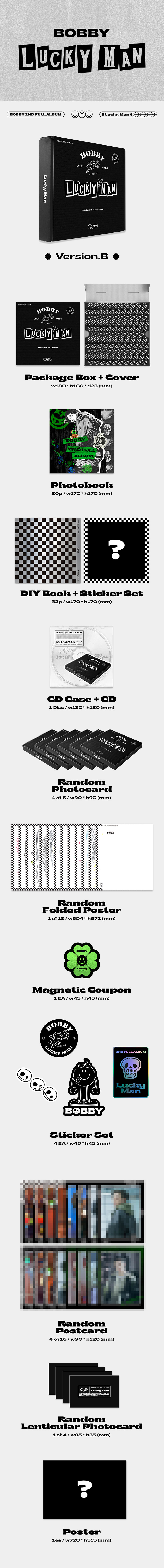● BOBBY 2nd FULL ALBUM [LUCKY MAN]은 구성품 이미지가 다른 A ver., B ver. 총 2종으로 발매됩니다.